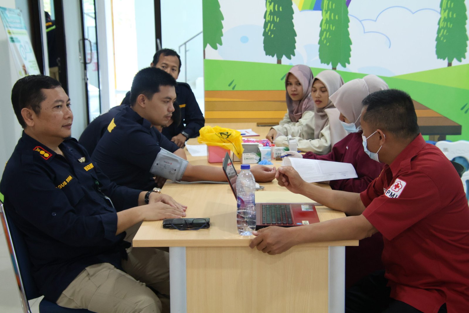 Sebelum proses donor, para peserta terlebih dahulu menjalani pemeriksaan kesehatan oleh petugas medis PMI guna memastikan kondisi tubuh pendonor dalam keadaan layak. Seluruh rangkaian kegiatan berjalan dengan tertib, aman, dan sesuai dengan standar kesehatan.