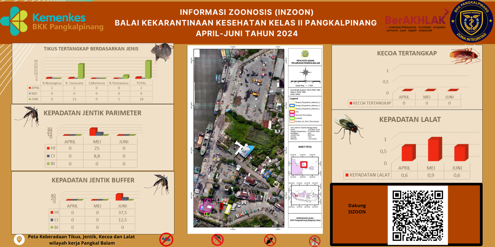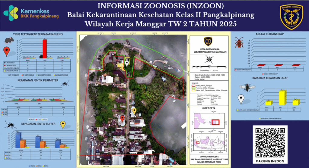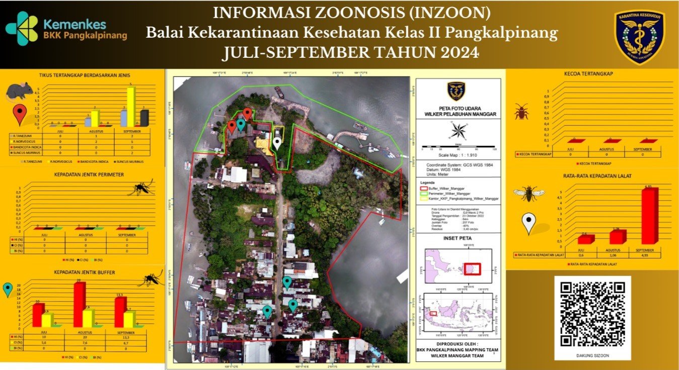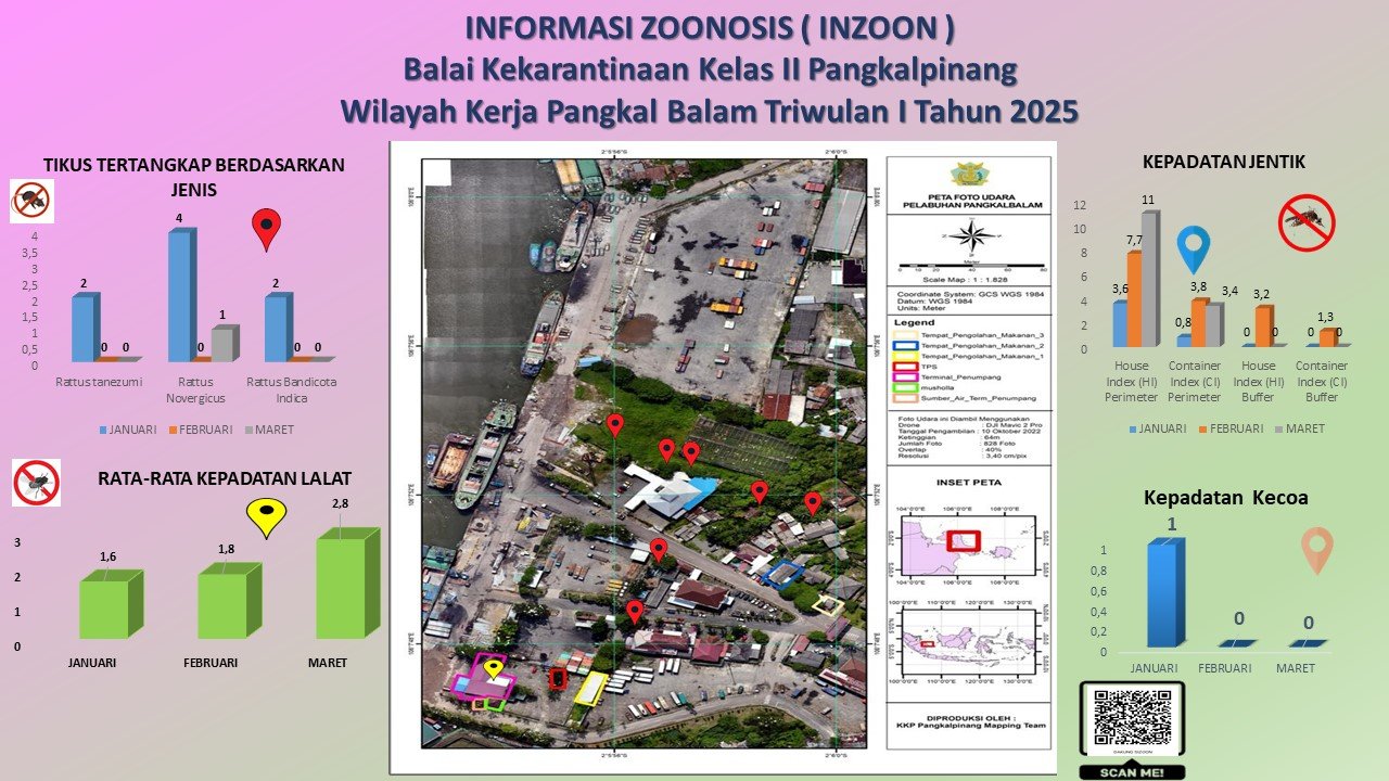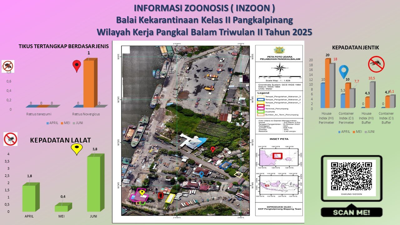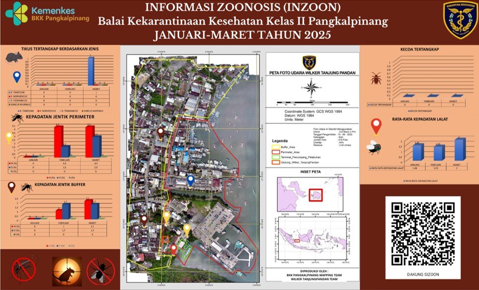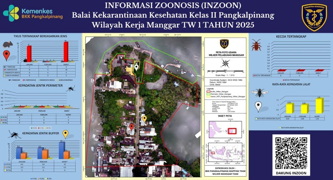INZOON adalah akronim dari Informasi tentang Zoonosis, yang merupakan salah satu bentuk Inovasi dari BKK Kelas II Pangkalpinang. Pelabuhan dan Bandara adalah tempat berkumpul dan keluar masuk orang dan banyak pihak yang terlibat dengan aktifitas beraneka ragam sesuai dengan kepentingannya masing- masing. Oleh sebab itu kenyamanan dan keamanan beraktifitas di pelabuhan menjadi sangat penting demi menjaminnya kelancaran keluar masuknya orang. Dalam hal menjamin kenyamanan dan keamanan di lokasi pelabuhan yang berkaitan dengan faktor risiko terhadap kesehatan maka Balai Kekarantinaan Kesehatan Kelas II Pangkalpinang diberi tanggung jawab untuk melakukan pengawasan dan pengendalian berkaitan dengan Survailans faktor risiko kesehatan akibat vektor.