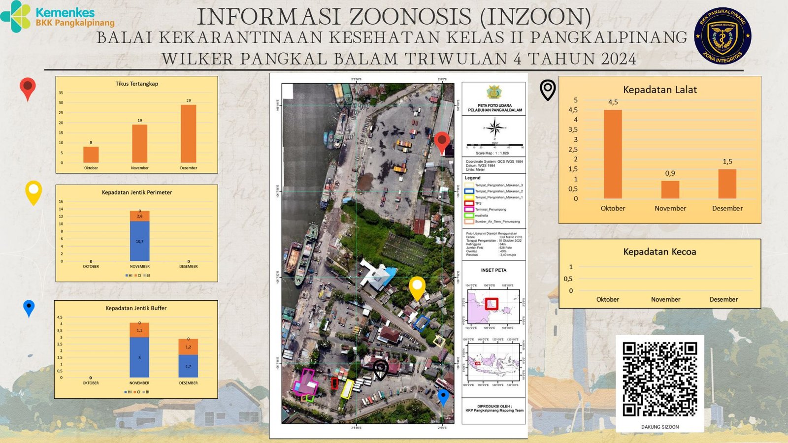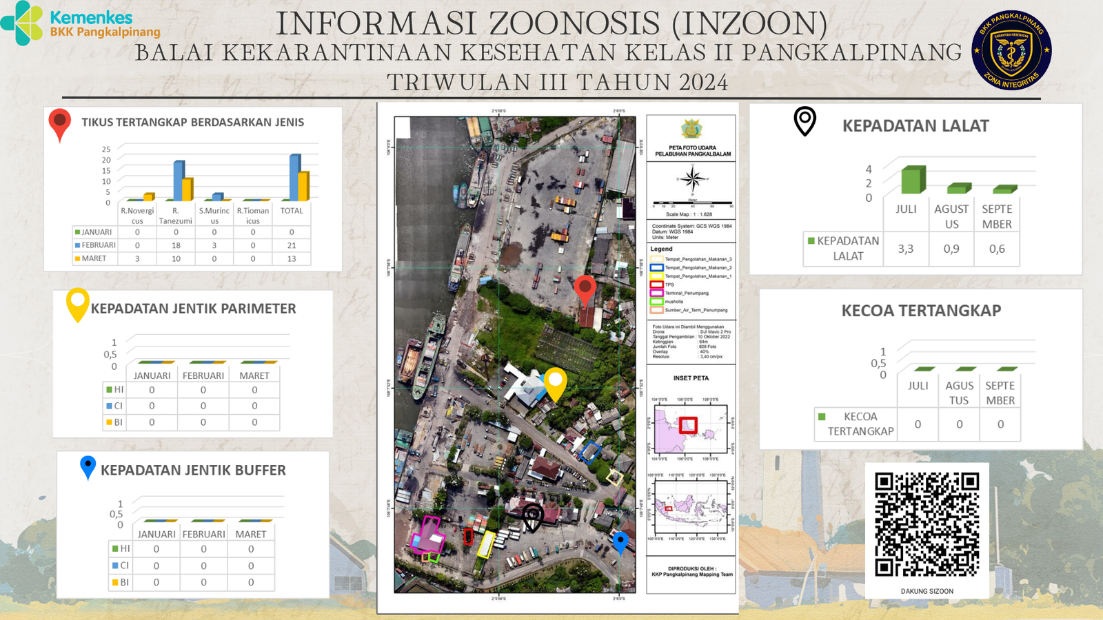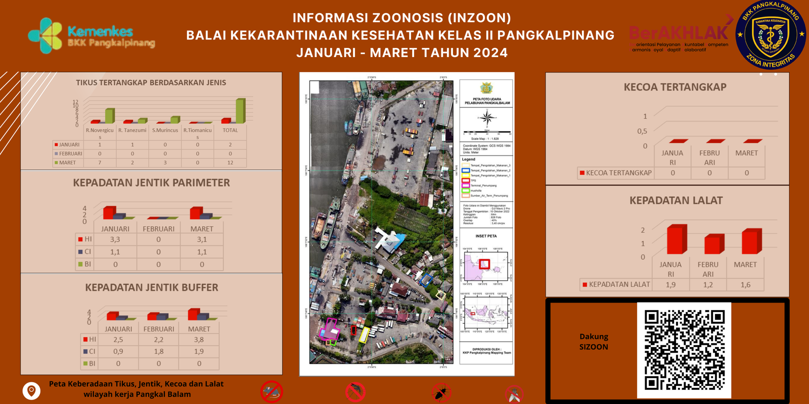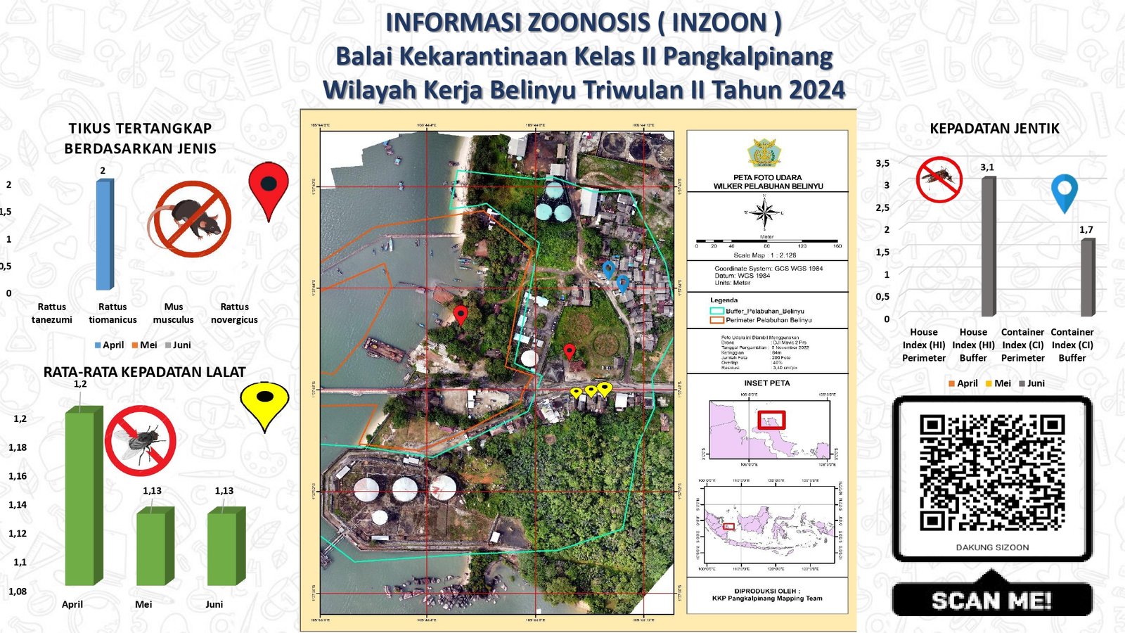 INZOON adalah akronim dari Informasi tentang Zoonosis, yang merupakan salah satu bentuk Inovasi dari BKK Kelas II Pangkalpinang. Pelabuhan dan Bandara adalah tempat berkumpul dan keluar masuk orang dan banyak pihak yang terlibat dengan aktifitas beraneka ragam sesuai dengan kepentingannya masing- masing. Oleh sebab itu kenyamanan dan keamanan beraktifitas di pelabuhan menjadi sangat penting demi menjaminnya kelancaran keluar masuknya orang. Dalam hal menjamin kenyamanan dan keamanan di lokasi pelabuhan yang berkaitan dengan faktor risiko terhadap kesehatan maka Balai Kekarantinaan Kesehatan Kelas II Pangkalpinang diberi tanggung jawab untuk melakukan pengawasan dan pengendalian berkaitan dengan Survailans faktor risiko kesehatan akibat vektor.