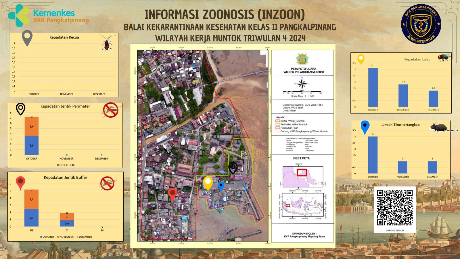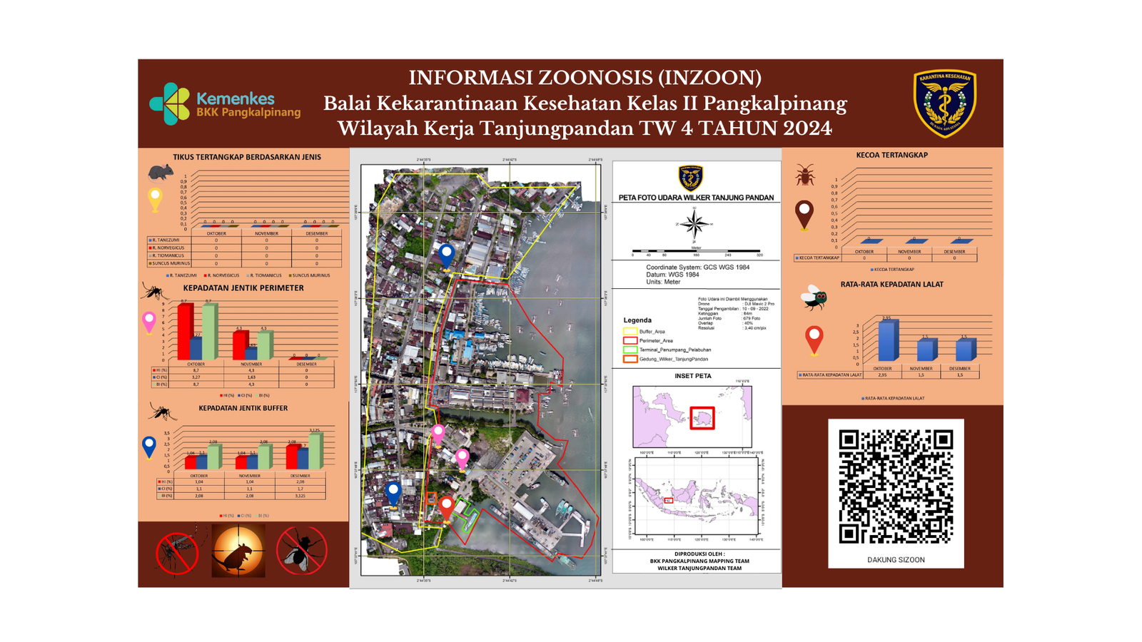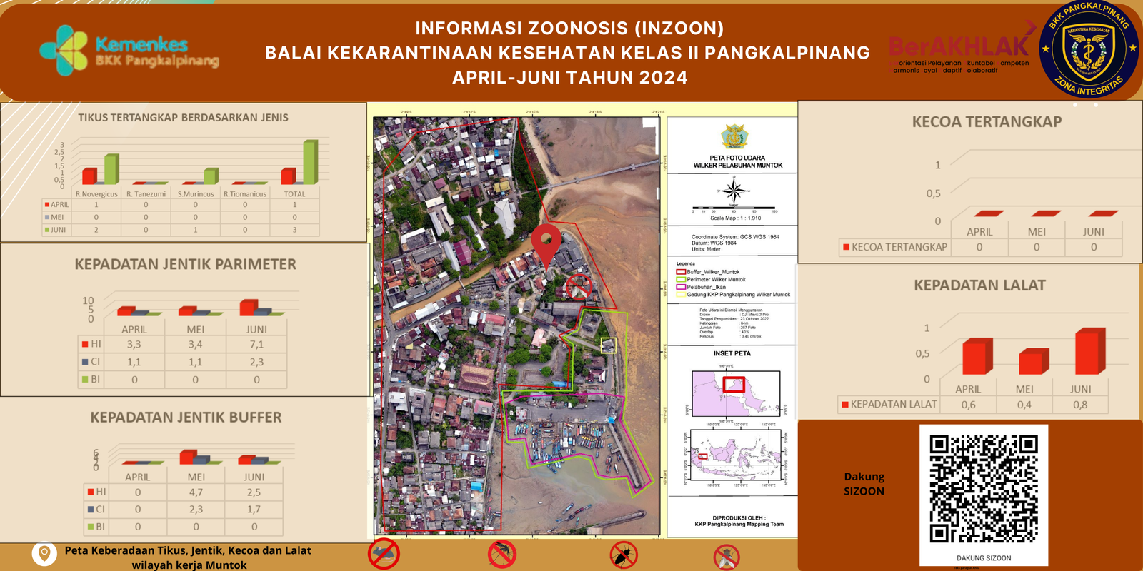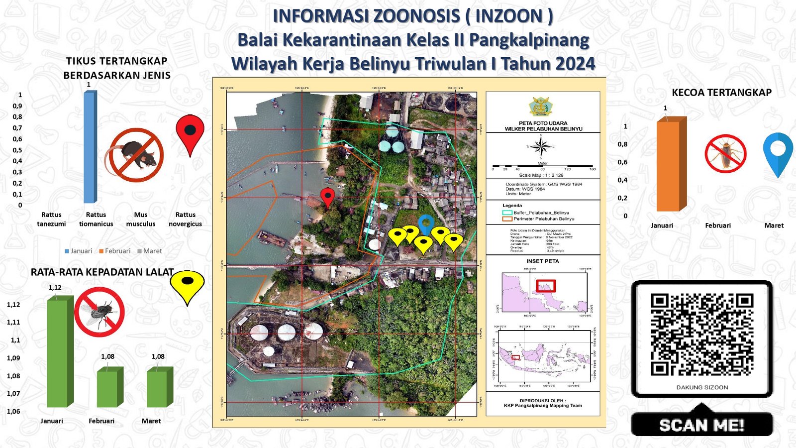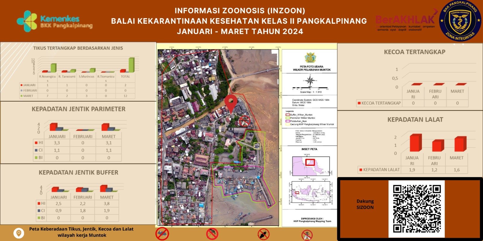 INZOON adalah akronim dari Informasi tentang Zoonosis, yang merupakan salah satu bentuk Inovasi dari BKK Kelas II Pangkalpinang. Pelabuhan dan Bandara adalah tempat berkumpul dan keluar masuk orang dan banyak pihak yang terlibat dengan aktifitas beraneka ragam sesuai dengan kepentingannya masing- masing. Oleh sebab itu kenyamanan dan keamanan beraktifitas di pelabuhan menjadi sangat penting demi menjaminnya kelancaran keluar masuknya orang. Dalam hal menjamin kenyamanan dan keamanan di lokasi pelabuhan yang berkaitan dengan faktor risiko terhadap kesehatan maka Balai Kekarantinaan Kesehatan Kelas II Pangkalpinang diberi tanggung jawab untuk melakukan pengawasan dan pengendalian berkaitan dengan Survailans faktor risiko kesehatan akibat vektor.