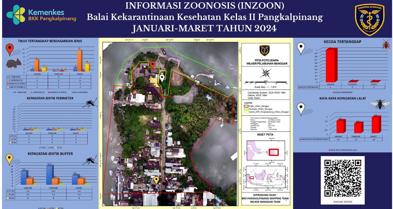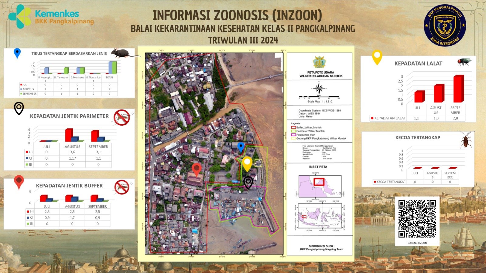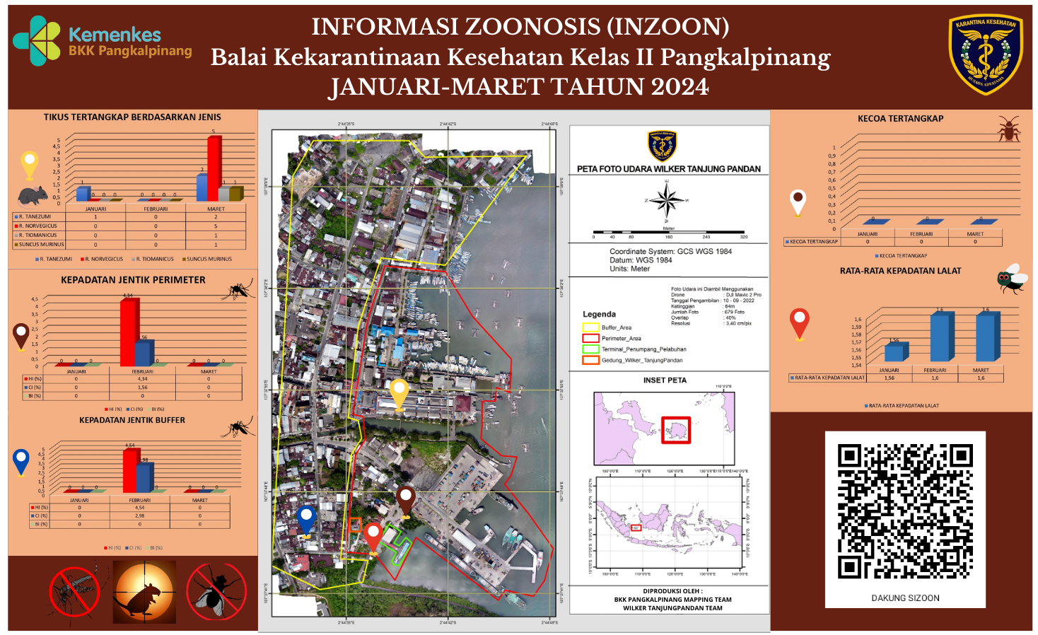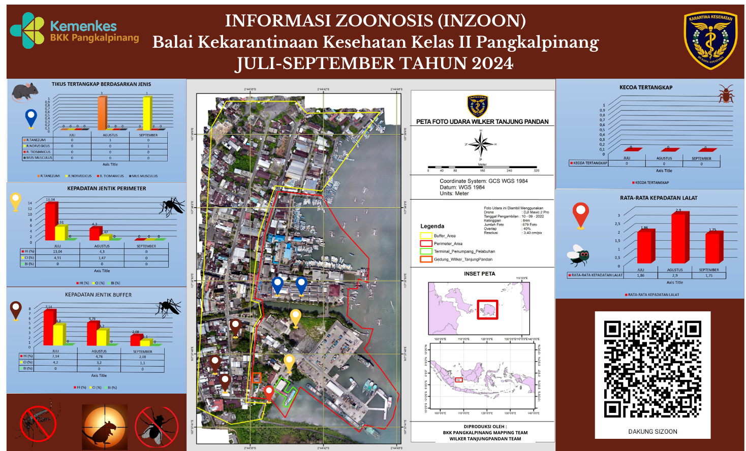 INZOON adalah akronim dari Informasi tentang Zoonosis, yang merupakan salah satu bentuk Inovasi dari BKK Kelas II Pangkalpinang. Pelabuhan dan Bandara adalah tempat berkumpul dan keluar masuk orang dan banyak pihak yang terlibat dengan aktifitas beraneka ragam sesuai dengan kepentingannya masing- masing. Oleh sebab itu kenyamanan dan keamanan beraktifitas di pelabuhan menjadi sangat penting demi menjaminnya kelancaran keluar masuknya orang. Dalam hal menjamin kenyamanan dan keamanan di lokasi pelabuhan yang berkaitan dengan faktor risiko terhadap kesehatan maka Balai Kekarantinaan Kesehatan Kelas II Pangkalpinang diberi tanggung jawab untuk melakukan pengawasan dan pengendalian berkaitan dengan Survailans faktor risiko kesehatan akibat vektor.