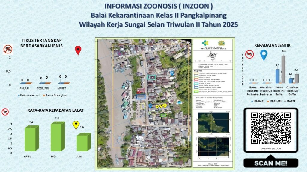 Balai Kekarantinaan Kesehatan Kelas II Pangkalpinang melakukan surveilans vektor penyakit menular meliputi surveilans vektor demam berdarah dengue/yellow fever, malaria, diare, dan pes. Kegiatan surveilans dilakukan sepanjang tahun untuk memantau dan mencegah penularan penyakit di pintu masuk negara/wilayah. Balai Kekarantinaan Kesehatan Kelas II Pangkalpinang juga melakukan pemetaan kepadatan vektor penyakit di setiap pelabuhan/bandara dengan menggunakan drone untuk membuat peta citra udara terupdate.